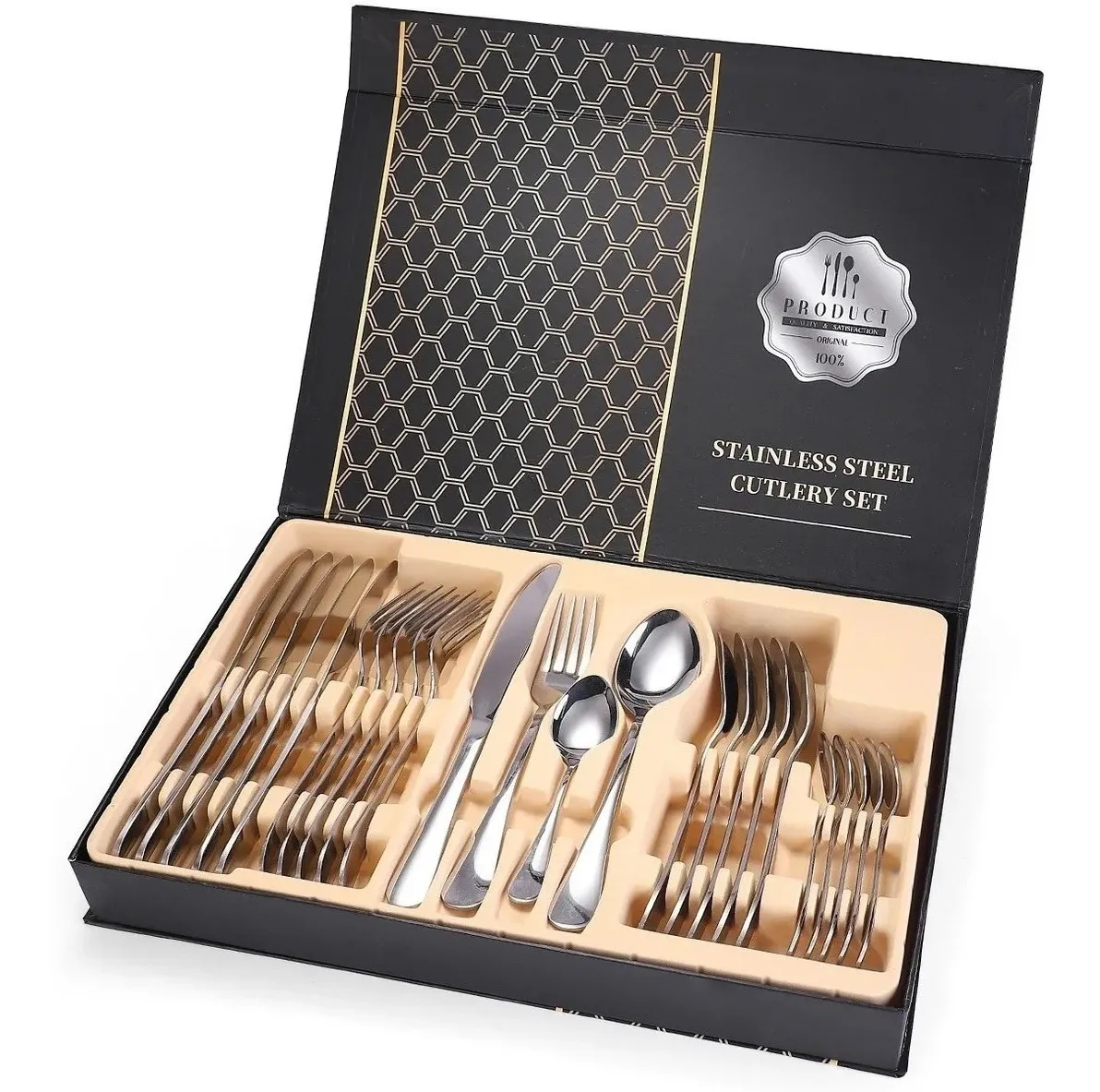 Set X24 Cubiertos Acero Inoxidable Platedo Caja