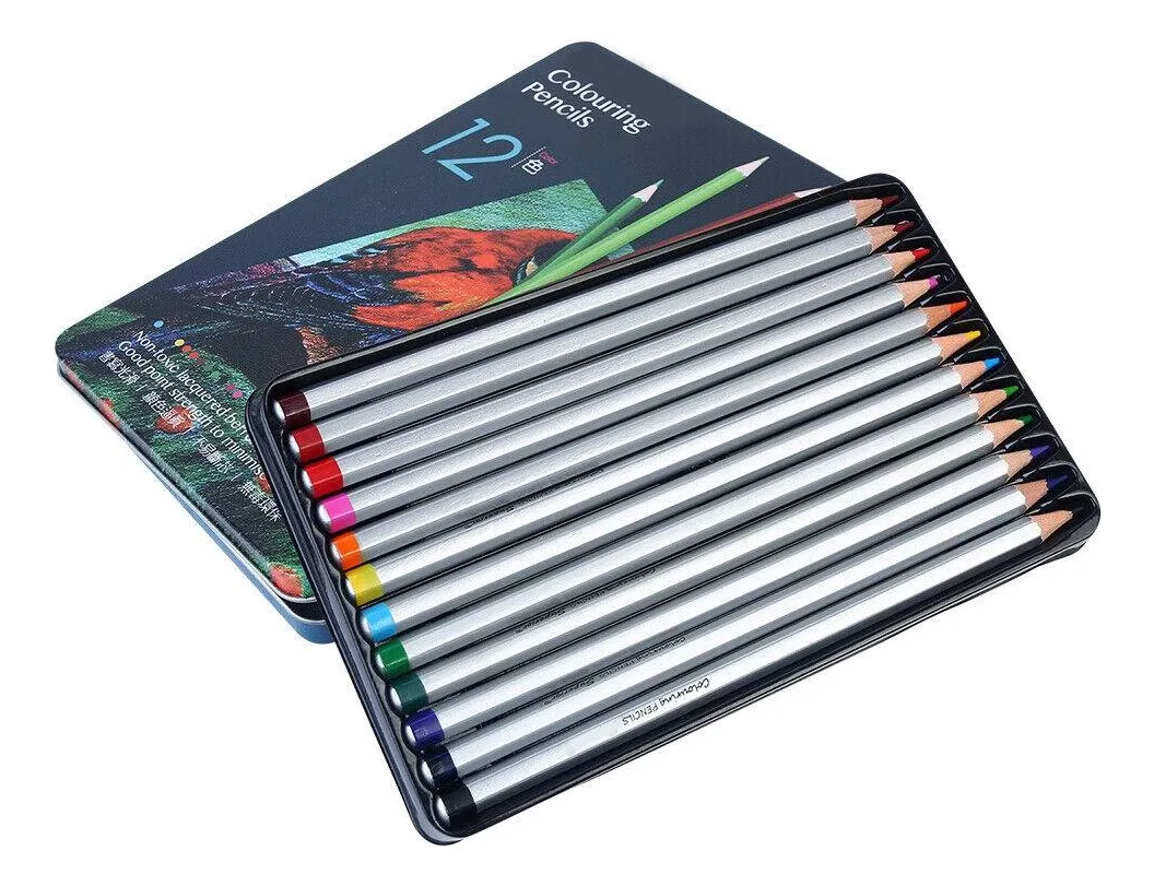 Set Lapices X 12 Caja Metal Acuarelables Colores Lata Dibujo