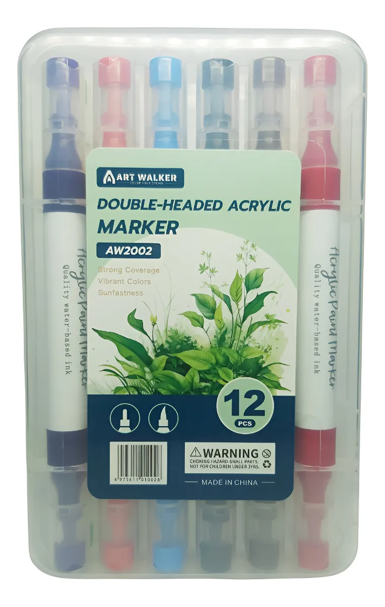 Marcador Acrilico Doble Punta X12 Colores Valija Impermeable