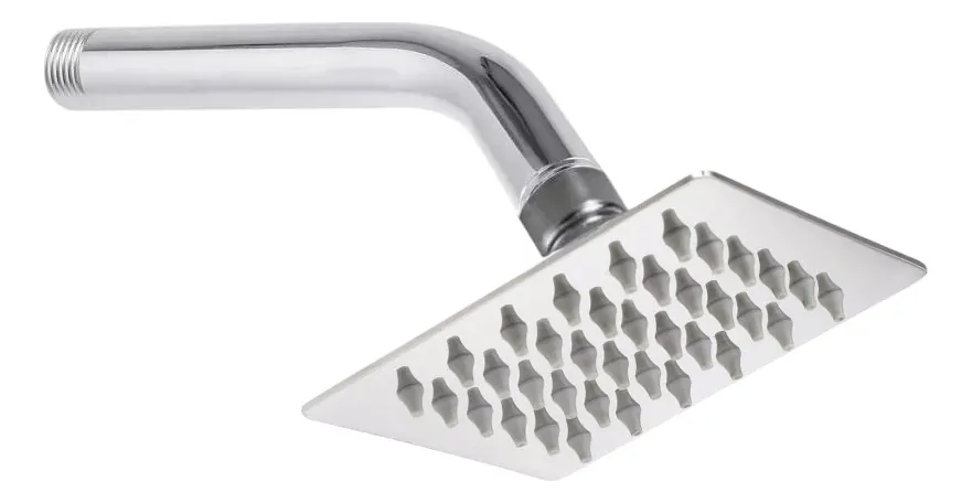 Flor Ducha Cuadrada 10cm Acero Inoxidable + Caño Brazo 15 Cm