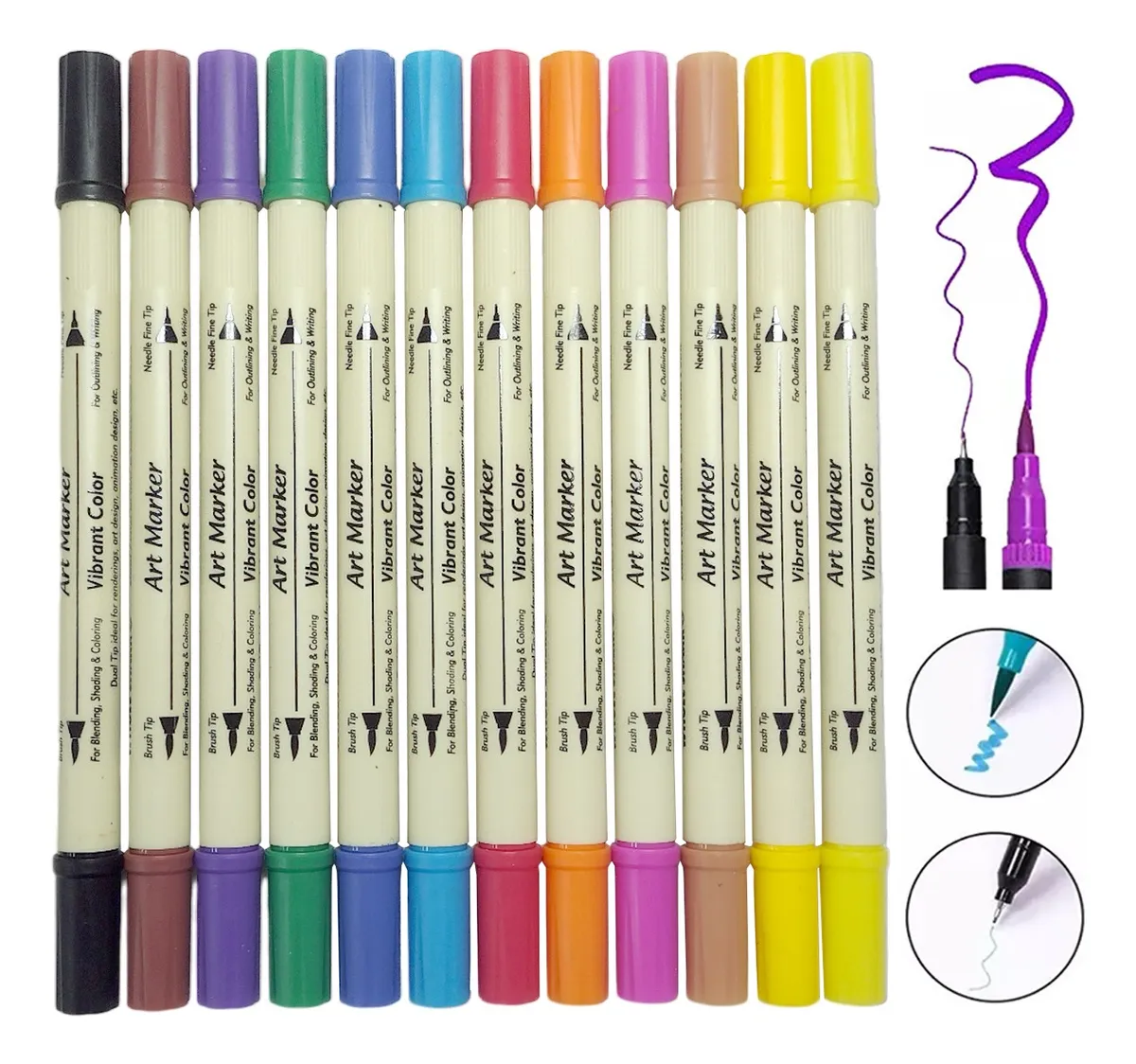 Set X 12 Marcadores Doble Punta Brush Pincel Microfibra