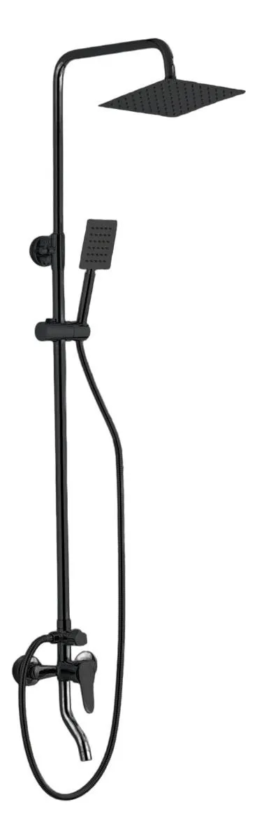 Columna Ducha Cuadrada Negro Exterior Monocomando Duchador