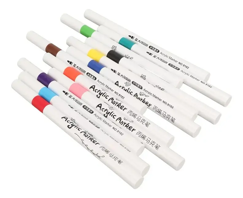 Marcador Acrílico Fibras X 12 Tela Pared Madera Vidrios