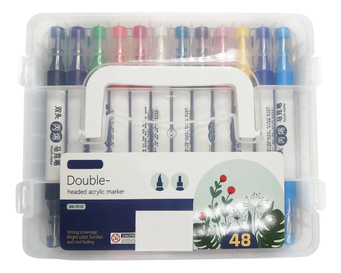 Marcador Acrilico Doble Punta X48 Colores Valija Impermeable