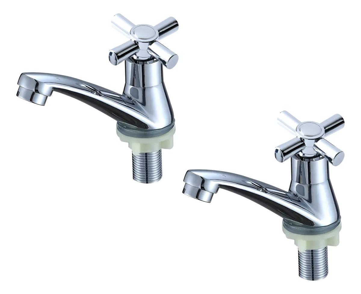 Set X2 Canilla Baño 1/2 Volante Cruz Metal Cierre Ceramico