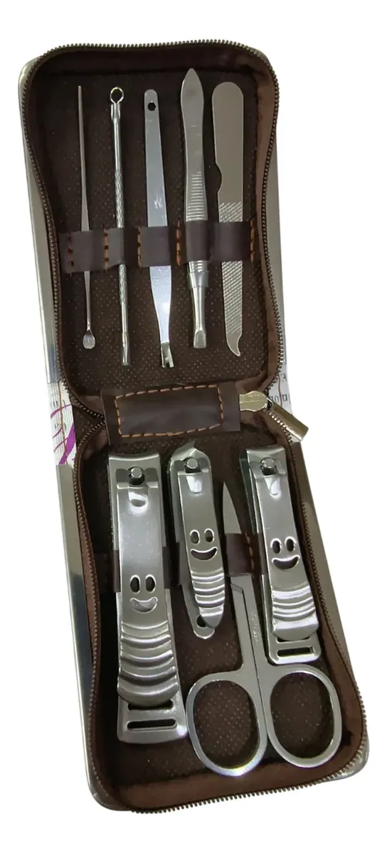 Set Manicura De Viaje X 9 Piezas Y Estuche Acero Quirurgico